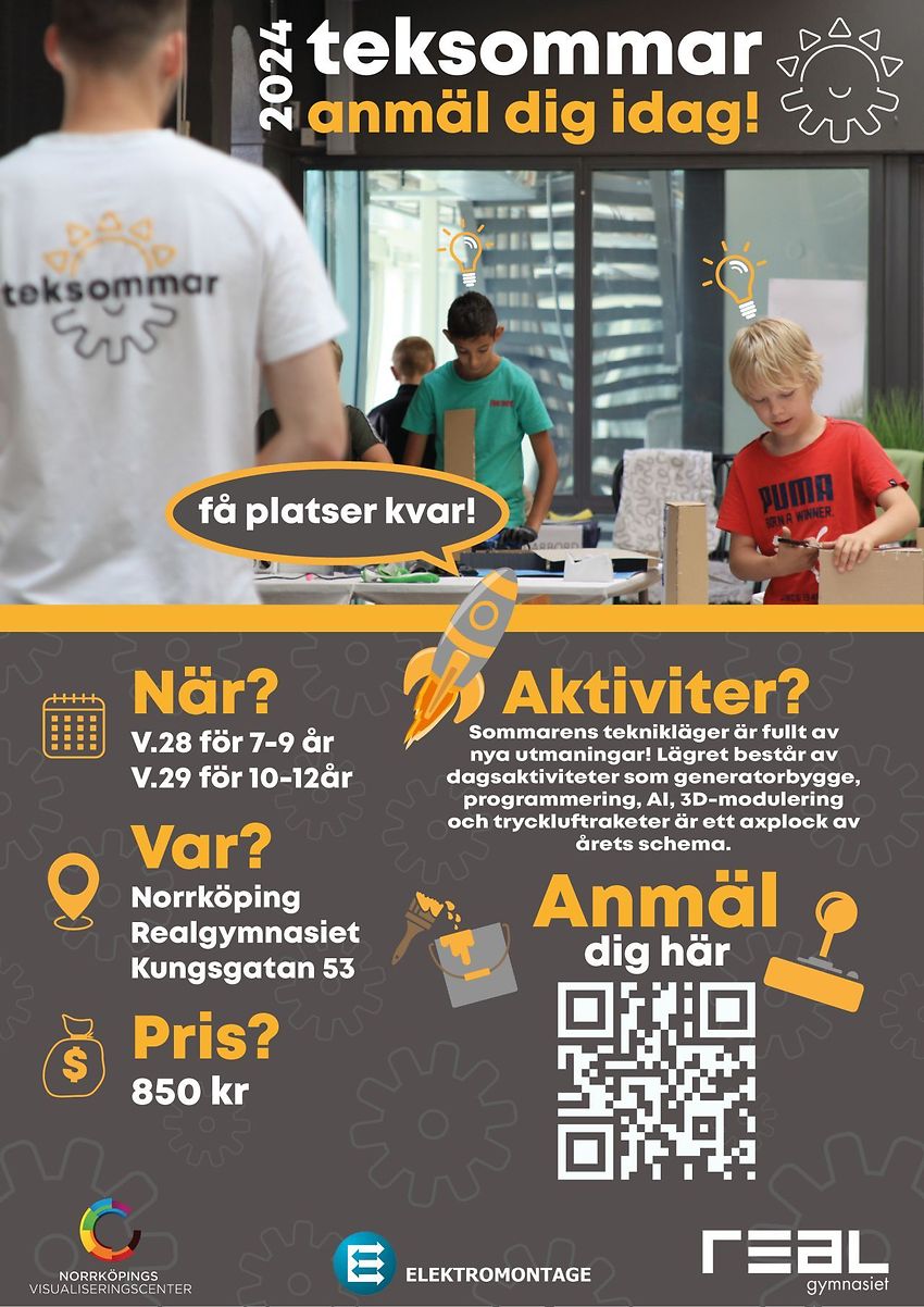 Vi är stolta sponsorer av Teksommar, ett teknikläger för barn mellan 7-12 år. På Teksommar får barnen en veckas sommarläger med tekniska utmaningar och kluriga projekt, såsom att bygga ett elkraftverk, programmera robotar, utforska VR och mycket mer. Teksommar hålls i Norrköping och vi hoppas såklart att dessa blivande små ingenjörer är vår nästa generation kollegor på Elektromontage!